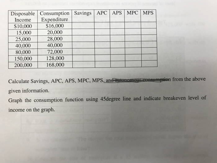 Economics Archive | April 26, 2015 | Chegg.com from d2vlcm61l7u1fs.cloudfront.net That is to say, c (consumer spending) equals a (autonomous consumption) added to the product of m (marginal propensity to consume) and d (true disposable income). See full list on economicshelp.org Consumption is the largest component of a country's. John maynard keynes created the consumption formula to show the relationship between disposable income and the total amount consumers spend. How to calculate consumption at any level of income? In this formula a is the level of autonomous consumption, where b is the marginal propensity to consume out of income. Generally, consumption equals autonomous consumption plus the product of marginal propensity to consume and disposable income. The formula is c = a + md.