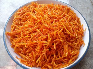 700 gr kentang, potong korek api 1 sdm air asam jawa 1,5 sdm gula palm garam secukupnya 1 sdm kapur sirih minyak untuk menggoreng kentang.